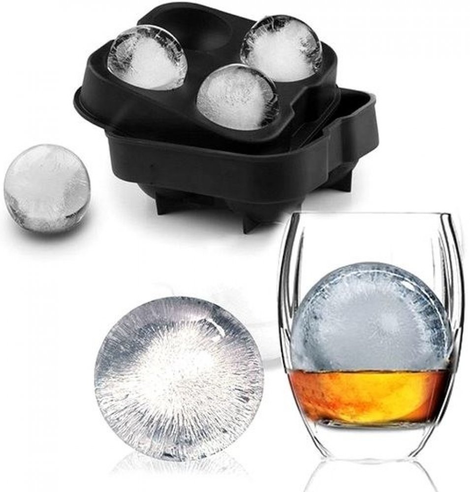 Obyčejným kostkám ledu už odzvonilo! Vychutnejte si nápoj s originální ledovou koulí. Jedinečný způsob jak z obyčejného nápoje vytvoříte luxusní drink! Formu lze použít i jako originální dárek. Stačí jen nalít vodu do formy a vložit na 6-8 hodin do mrazničky.Materiál:Potravinářský silikonVelikost formy:13 × 13 × 4 cm (na 4 ledové koule) Barva:Černá