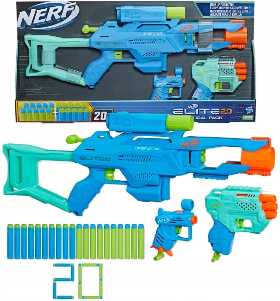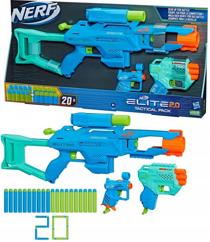 Nerf Elite 2.0 Tactical Pack je nerfastická sada, díky které budete mít kompletní sadu výzbroje a okamžitě vybavíte celý oddíl. Sada se skládá ze 3 vystřelovačů a 20 šipek.