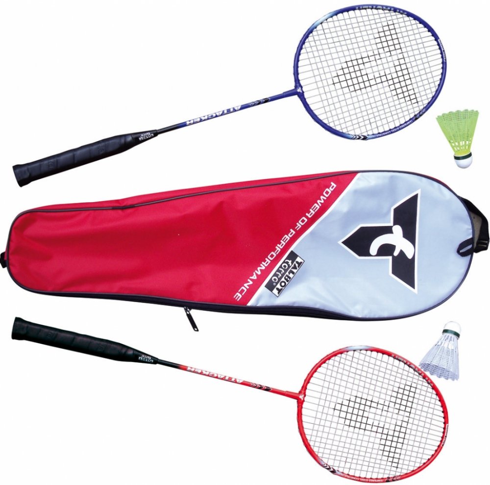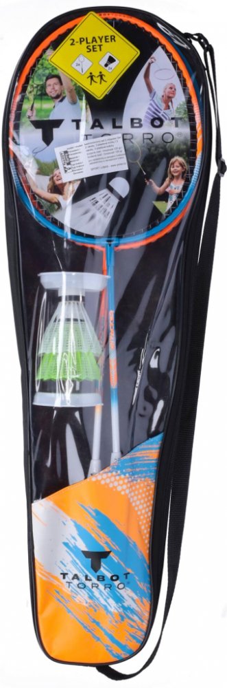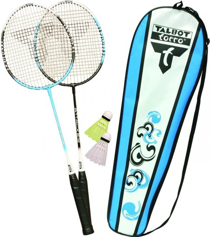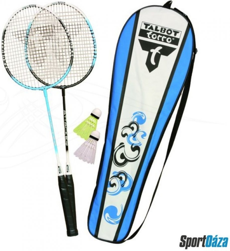 Sada na badminton pro dva Talbot Torro Attacker je ideální volbou pro začínající a rekreační hráče. Badmintonové rakety jsou vyrobené z tvrzené oceli a míčky z nylonu s korkovou hlavou. Sada je dodávaná v praktickém obalu s popruhem přes rameno. - pro začátečníky a rekreační hráče - 2 rakety a 2 míčky - materiál: ocel - délka rakety: 665 mm - hmotnost rakety: cca 95 g - výplet: nylon, 0,75 mm - nylonové míčky s korkovou hlavou - praktický obal s popruhem přes rameno