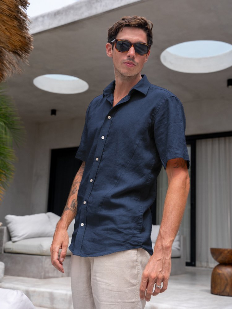 TallGuys pánská prodloužená lněná košile límeček regular navy