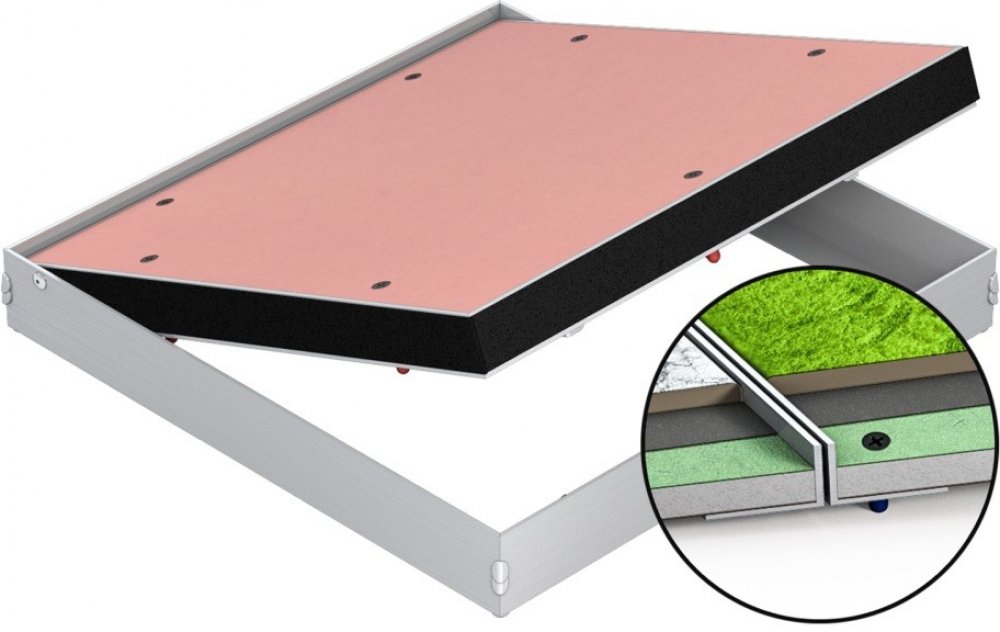 Konstrukce: Hlavní nosná konstrukce dvířek a rám jsou vyrobeny z hliníkového profilu osazené sádrokartonovou výplní o síle 25mm. Možnost použít dvířka jako pravé i levé. Mezera mezi pohyblivým dílem klapky a pevným rámem je vyplněna vypěňujícím protipožárním těsněním. Uzavírání dvířek je US zámkem. Mechanismus otevírání, který zajišťuje bezpečné uzavření. Otevírání zatlačením – otevřít a zavřít (tlakový zámek).