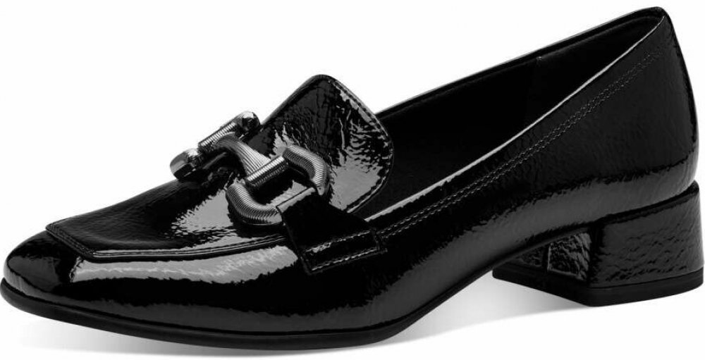 Tato obuv od Tamaris kombinuje jednoduchost s ženským šarmem a pohodlím. Jejich lesklý černý svršek vytváří originální vzhled, který lze sladit s různými styly a vytvořit zajímavý outfit. Přidaná aplikace přes nárt dodává obuvi elegantní dotek. Měkká stélka z paměťové pěny poskytuje dokonalý komfort pro vaše nohy po celý den a nízký podpatek s protiskluzovou úpravou zajišťuje stabilitu při chůzi. ...