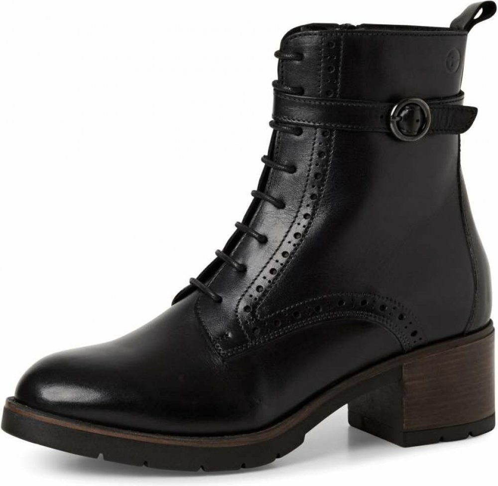 Tyto kotníkové boty Tamaris jsou skvělou volbou pro všechny ženy, které chtějí v každém kroku cítit pohodlí, a přitom neztrácet na stylu. Na první pohled zaujmou svým koženým svrškem černé barvy ozdobeným efektní aplikací v horní části a působivým vzorem, co vytváří originální vzhled. Obouvání vám usnadní praktický boční zip, zatímco šněrovaní zajišťuje dokonalé přizpůsobení tvaru nohy. Pohodlí ještě více podtrhuje měkká stélka Touch-It z paměťové pěny, která se okamžitě přizpůsobí tvaru chodidla a poskytne komfort i při dlouhém nošení – ať už se chystáte do práce, na procházku městem nebo posezení s přáteli. Podešev se širokým podpatkem dodává botám nejen módní vzhled, ale také spolehlivou stabilitu a jistotu při každém kroku. Kotníkové boty TAMARIS nejsou jen módním doplňkem, ale také investicí do komfortu a působivého vzhledu, které vás nikdy neomrzí.
