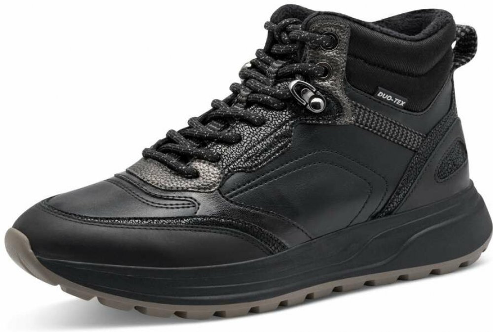 Atraktivní vzhled kotníkových bot Tamaris je výsledkem jedinečné kombinace materiálů, struktur a jemných kontrastů, které vytvářejí moderní a zároveň nadčasový design. Materiál svršku je navíc vybavený nepromokavou membránou pro komfortní pocit za každého počasí. Praktické šněrování umožňuje přesné přizpůsobení obuvi vašemu chodidlu, zatímco boční zip zajišťuje rychlé a pohodlné nazouvání. Vnitřní prostor je vybaven měkkou vyjímatelnou stélkou, která se dokonale přizpůsobí vašemu kroku a poskytuje příjemný pocit i při celodenním nošení. Spolu s textilní podšívkou vytváří prostředí, ve kterém se budete cítit maximálně pohodlně. Design doplňuje vyšší podešev, která nejen dodává botám moderní vzhled, ale také přispívá k celkovému komfortu při chůzi. Kotníkové boty Tamaris jsou ideální volbou pro ženy, které hledají kombinaci stylu, pohodlí a funkčnosti. Perfektně se hodí na každodenní nošení do města, do práce nebo na volný čas a stanou se vaším spolehlivým společníkem v každém kroku.