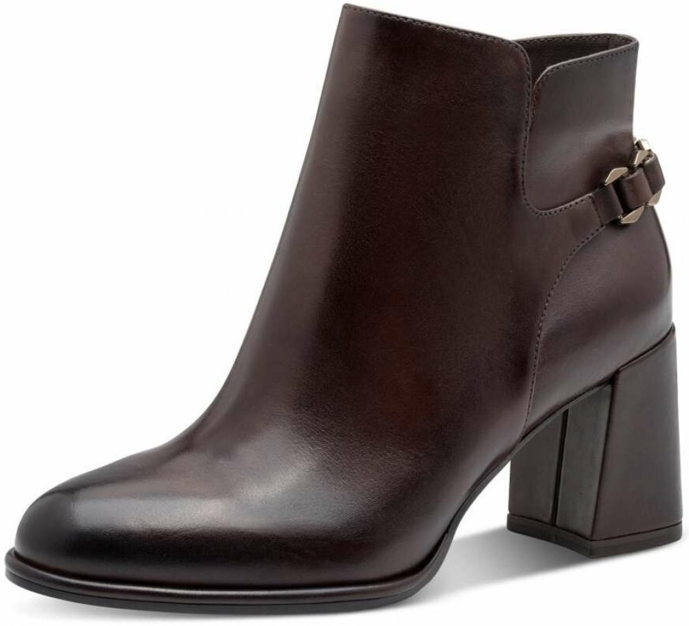 Kotníková obuv Tamaris je víc než jen boty – je to vyjádření ženského stylu, elegance a každodenního pohodlí. Kožený svršek v hnědém odstínu zajišťuje univerzálnost a snadné kombinování s různými outfity, nadčasový design je zvýrazněn efektním detailem v zadní části, který dodává botám osobitý charakter a podtrhuje jejich elegantní styl. Praktické prvky jsou navrženy s maximálním ohledem na pohodlí ženy. Zip na vnitřní straně umožňuje rychlé a snadné nazouvání a uvnitř vás čeká stélka Touch-it z paměťové pěny, která se dokonale přizpůsobí tvaru chodidla. Podstatnou roli hraje také vysoký podpatek se širokou základnou a nárazy tlumící technologií. Dodá vašemu postoji eleganci, opticky prodlouží siluetu, a přesto díky protiskluzové úpravě poskytne stabilitu. S touto obuví Tamaris získáte nejen elegantní kotníkové boty, ale i jistotu, že každý váš krok bude působit ladně, sebevědomě a pohodlně. Je to model, který si rychle oblíbíte a který vám bude spolehlivým společníkem pro mnoho různých příležitostí.