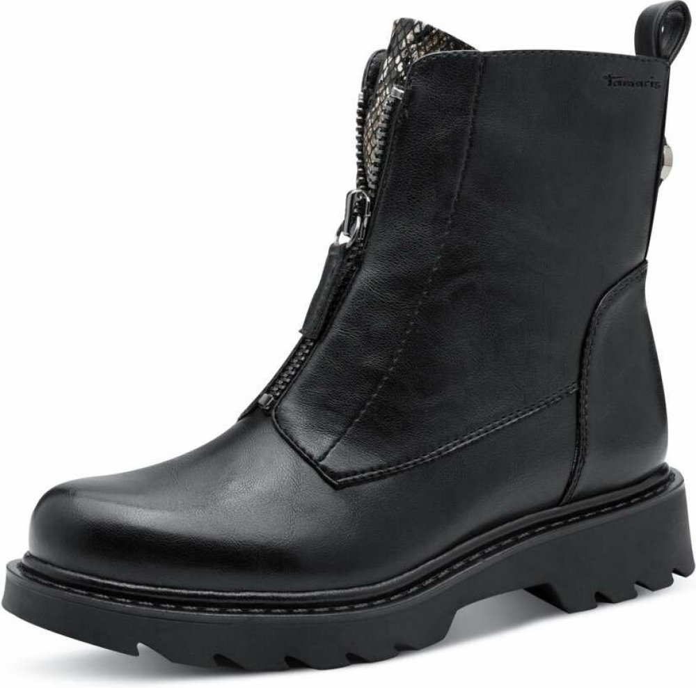 Tento model značky Tamaris představuje nadčasovou klasiku, která dokonale propojuje moderní styl s maximálním komfortem. Svršek v černé barvě působí univerzálně, takže jej snadno sladíte s každodenními outfity a atraktivní vzor pod zipem v části nártu dodává botám jedinečný charakter a činí z nich stylový kousek. Jednoduché nazutí poskytne praktický boční zip a o měkký došlap se postará komfortní stélka, která přináší příjemný pocit při každém kroku. Podešev podtrhuje moderní vzhled, ale zároveň poskytuje stabilitu a bezpečný krok na různých površích svým výrazným vzorem. Tyto kotníkové boty Tamaris jsou ideálním spojením stylu a praktičnosti – stanou se spolehlivým doplňkem vašeho šatníku a jistotou, že budete vypadat skvěle a zároveň si užijete pohodlí, které si zasloužíte.