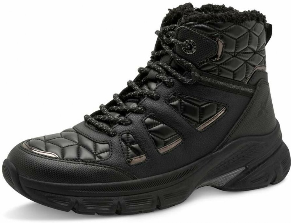 Tyto černé sportovní boty Tamaris v sobě spojují moderní ženský vzhled a dokonalý komfort, který oceníte při každém kroku. Už na první pohled zaujmou svým designem, svršek zdobený efektním prošitím a jemnými lesklými liniemi dodává botám šmrnc, díky kterému se stanou nepřehlédnutelnou součástí vašeho outfitu. Praktičnost je tu dokonale promyšlená. Šněrování v kombinaci s bočním zipem vám usnadní nazouvání a zároveň se postará o to, aby boty perfektně padly na každou nohu. Uvnitř na vás čeká měkká stélka a hřejivá podšívka, které vám dopřejí pocit pohodlí i během dlouhých dnů, kdy jste neustále v pohybu. Nezapomínejme ani na detaily, které dělají rozdíl – stabilní podešev nejen podtrhuje trendy vzhled, ale zajistí jistotu každým krokem. Tyto boty nejsou jen obyčejnou obuví – jsou módním vyjádřením vaší osobnosti. Dodají vašemu stylu moderní akcent a zajistí, že se budete cítit sebevědomě a pohodlně, ať už se vydáte kamkoliv – do práce, na procházku městem nebo setkání s přáteli. Tyto kotníkové boty Tamaris jsou spojením trendů, kvality a pohodlí – a přesně proto vám ve vašem šatníku rozhodně nesmí chybět.