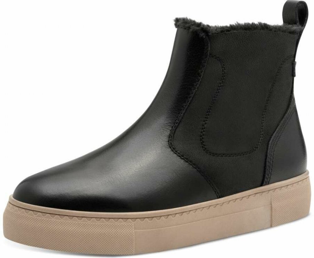 Kotníkové boty značky Tamaris představují ideální spojení módního stylu a pohodlí, které oceníte každý den. Jejich černý kožený svršek působí nadčasově, zatímco aplikace na zadní části a jemný textilní lem kolem horního okraje dodávají modelu originální a atraktivní vzhled. Tyto detaily podtrhují osobitost obuvi a činí z nich kousek, který dokonale doplní váš outfit. Pro snadné obouvání jsou boty vybaveny praktickým bočním zipem, díky kterému je nazujete během okamžiku. Jakmile do nich vkročíte, obklopí vás hřejivé vnitřní zateplení a příjemně měkká stélka, která poskytuje maximální komfort i při celodenním nošení. Moderní vzhled podtrhuje vyšší stabilní podešev v kontrastním barevném provedení. Ta nejen opticky zaujme, ale zároveň zajišťuje spolehlivou stabilitu a pohodlný krok. Tyto kotníkové boty Tamaris představují ideální volbu pro ženy, které hledají obuv kombinující současné módní trendy, kvalitní materiály a spolehlivou funkčnost.