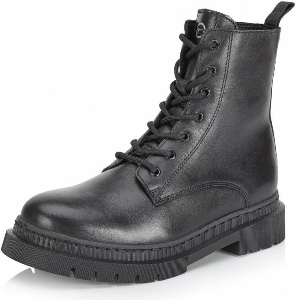 Dámská kotníková obuv značky TAMARIS, je to pravé, co potřebuje každá moderní žena v botníku. Hladký kožený svršek černé barvy klade důraz na jednoduchost, který přímo vystihuje tento model. Dominantou kotníků je jejich mohutná podešev, a spolu s vyjímatelnou stélkou a zateplením se obuv blíží k dokonalosti. Snadné nazutí zajistí boční zip a šněrováním si je upravíte dle svých individuálních potřeb. Univerzální černá barva svršku a střídmý design umožňují snadné sladění s různými outfity, od formálních po neformální, což z nich činí všestranný kousek do vaší obuvní kolekce.
