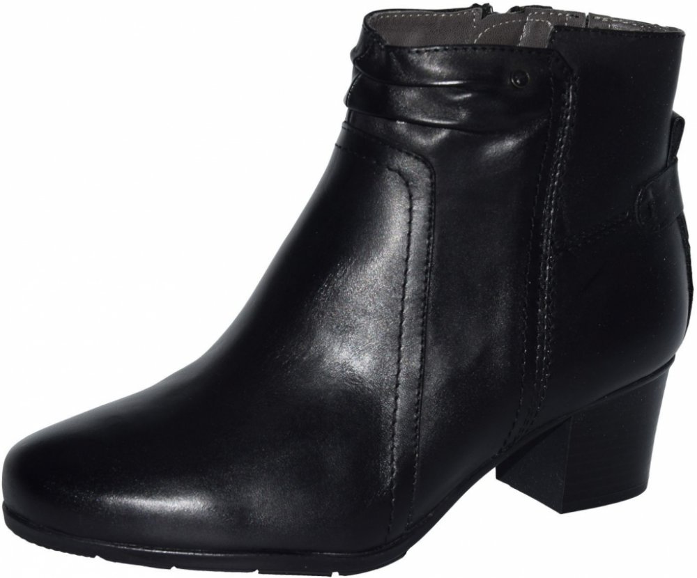 Kotníková obuv Tamaris z řady Comfort má svršek ozdobený nakrčením materiálu u horního okraje. Příjemná je stélka z paměťové pěny a podpatek s tlumením při došlapu. Podšívka a stélka je tence zateplená příjemným materiálem.