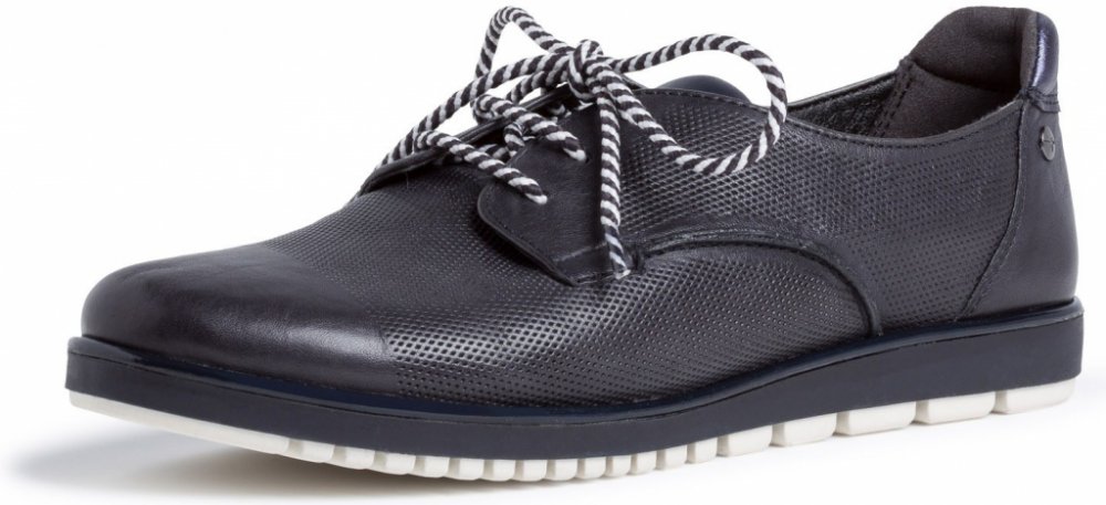 Dámská volnočasová obuv s raženým svrškem je v komfortním provedení. Je velice lehká, flexibilní a svršek je z jemné přírodní kůže. Chodidla se budou cítit pohodlně díky měkce polstrované stélce v provedení Touch it, která se chodidlům přizpůsobí. Tkaničky ve dvoubarevném provedení je oživují.
