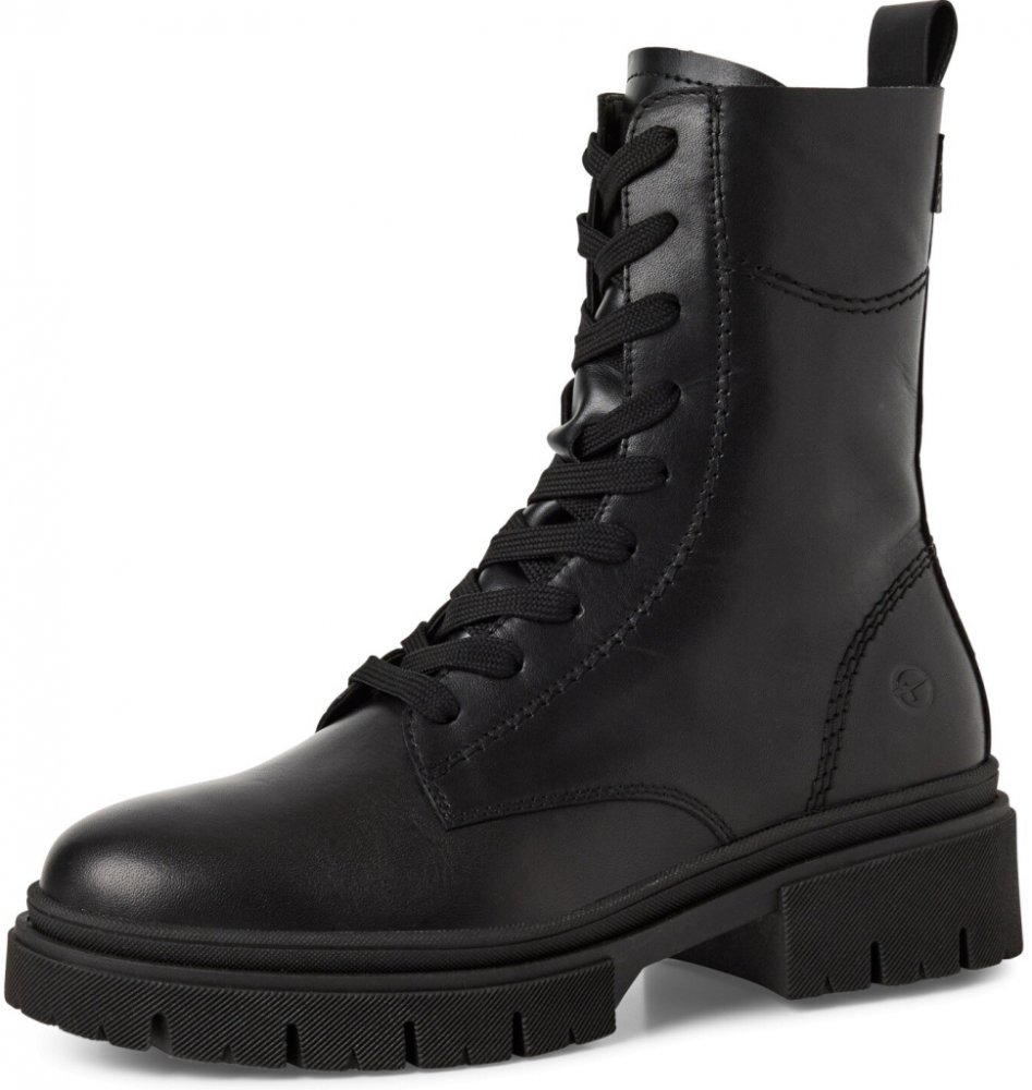 Dámské kožené kotníkové boty Tamaris se šněrováním a postranním zipem. Masivní protiskluzová podrážka zajistí pohodlnou a bezpečnou chůzi.