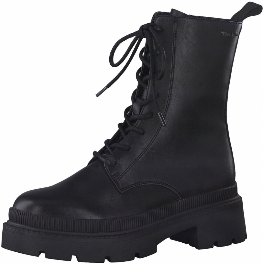 Dámské zateplené kotníkové boty Tamaris na bytelné podrážce se šněrováním. Jednoduchý střih na bytelné podrážce je ideální do nepříznivého počasí i k běžnému chození. Díky platformě a zateplení budou vaše nohy v teple. Podešev:Podešev obuvi je s protiskluzovým vzorkem vyrobená ze syntetického materiálu. Je flexibilní díky ručnímu prošívání. Podpatek vysoký 4,5 cm. Svršek:Svršek obuvi je vyrobený ze syntetického materiálu. Barva svršku je černá. Podšívka:Podšívka je zateplená, vyrobená z textilního a syntetického materiálu. Stélka: Stélka je vyrobená z textilního materiálu vyměkčením TOUCH IT. Šířka:G Svršek: syntetika Podšívka: textil/syntetika Stélka: textil Podešev: syntetika Šířka: g
