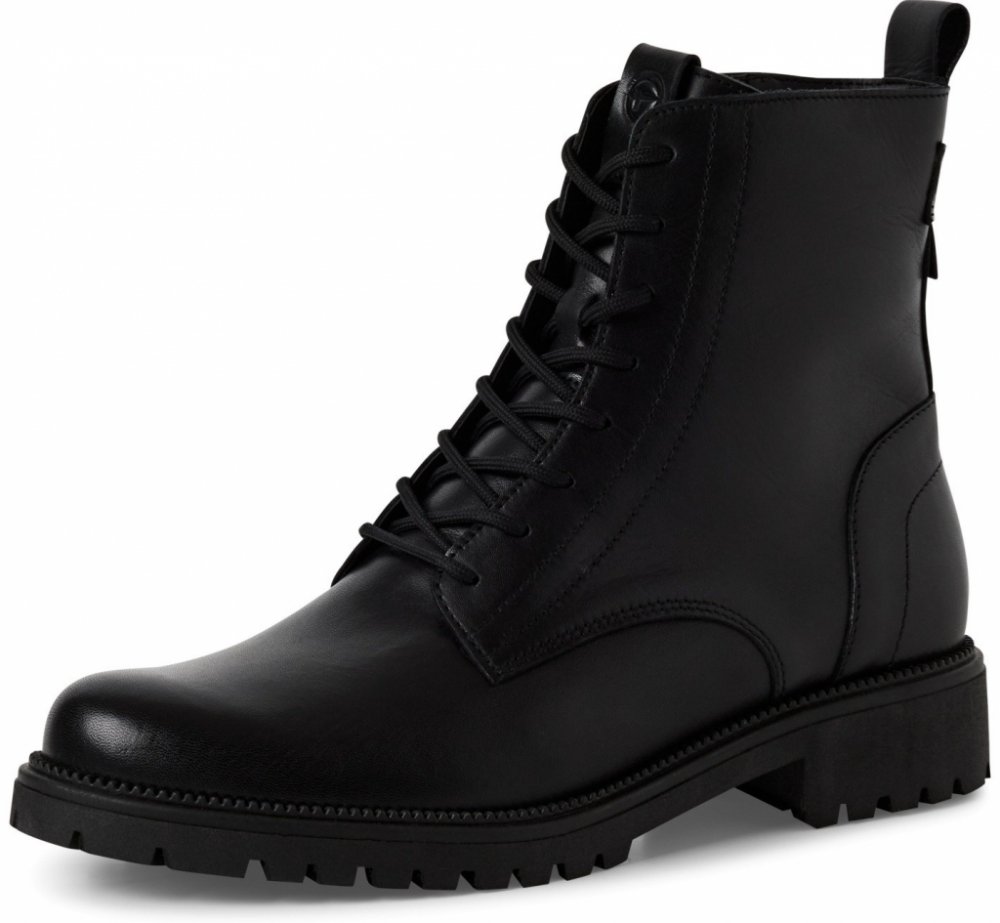 Dámské kotníkové boty Tamaris se šněrováním a postranním zipem pro snadné přezutí. Bezpečný krok zajistí bytelná protiskluzová podrážka.