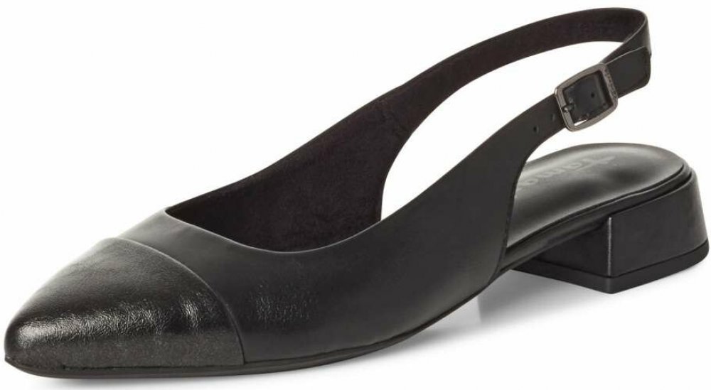 Tyto černé lodičky s otevřenou patou a lesklou špičkou kombinují eleganci a ženskost. Mají univerzální barvu, která je snadno kombinovatelná s různými outfity. Zapínání na přezku kolem kotníku dodává botám luxusní nádech a zároveň zajišťuje bezpečné a pohodlné nošení. Otevřená pata přidává na vzdušnosti a lehkosti, což dělá tyto lodičky ideální volbou pro teplejší dny na formální i neformální příl...