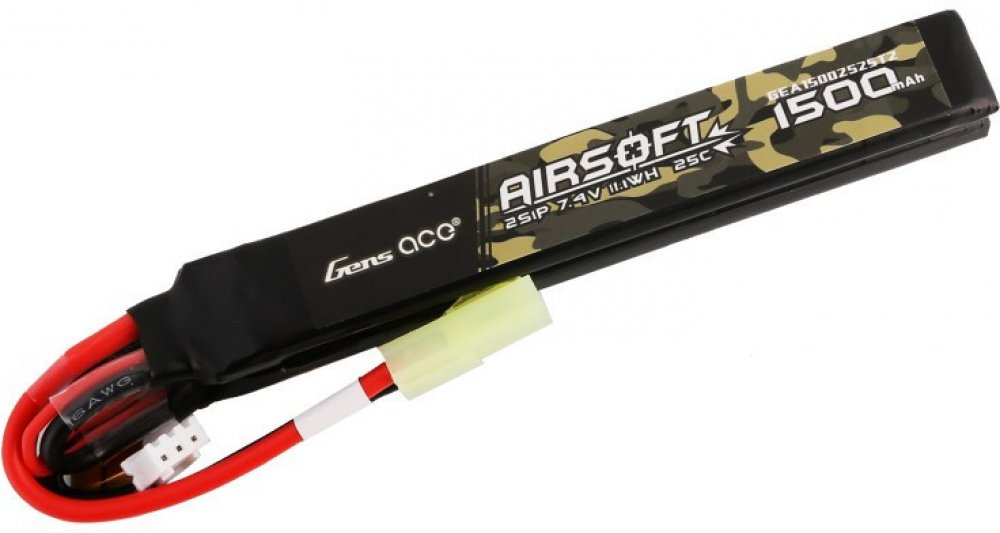 Gens ace 25C 1500mAh 2S1P 7,4V Nunchuck 2X Airsoft Gun Lipo baterie s mini konektorem Tamiya PlugPokud hledáte spolehlivý zdroj energie pro svou airsoftovou repliku, pak byl speciálně pro vás vytvořen akumulátor Gens ace 25C 1500mAh 2S1P 7,4V Nunchuck 2X s konektorem mini Tamiya Plug. Je ideální pro většinu modelů AEG, včetně oblíbených replik, jako jsou M4, CM16, SCAR, AR15, vybavených baňkami LE...