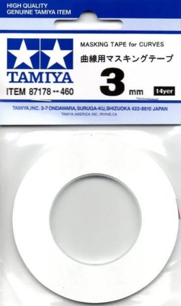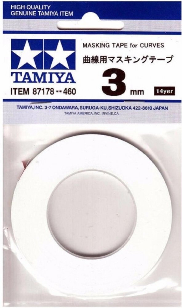 Maskovací páska Tamiya 3mm pro oblouky. Maskovacími páskami Tamiya je možné vytvářet proužky široké 0,5 mm, ale i několik centimetrů. Nízká lepivost zabraňuje stržení podkladové barvy.