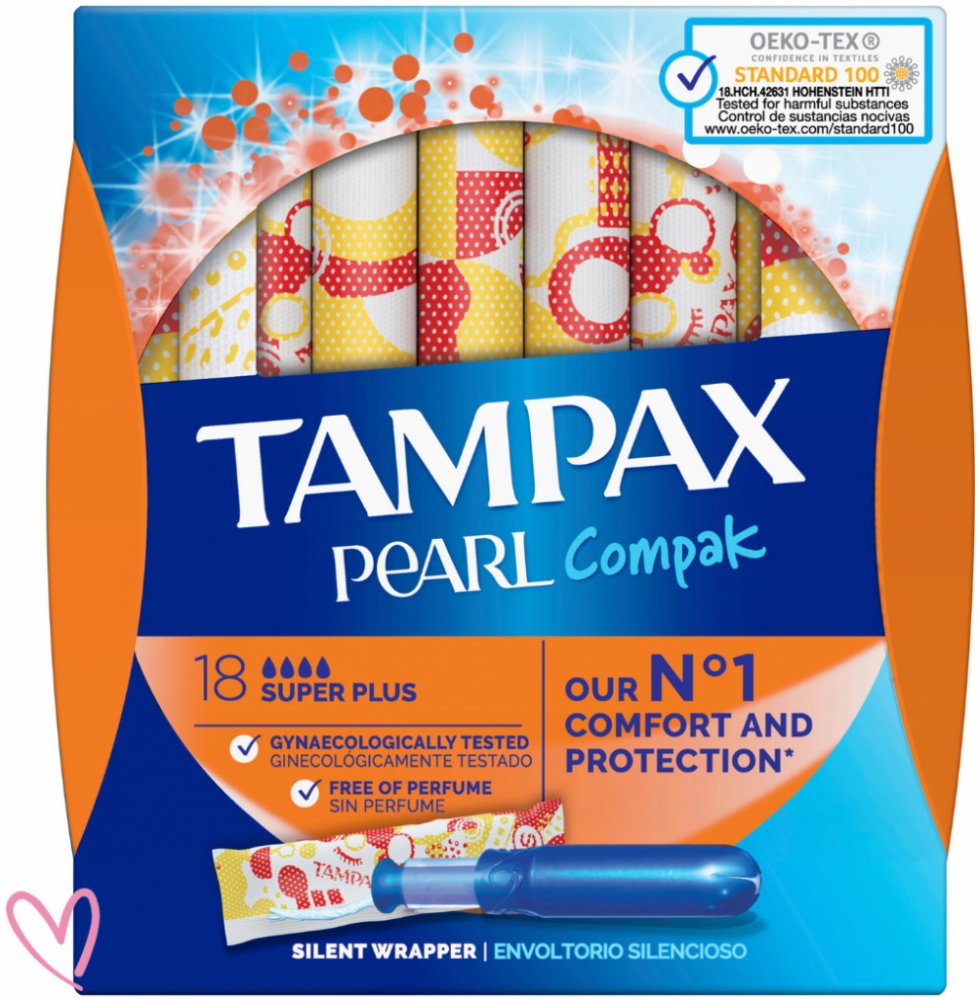 Tampony Tampax Compak Pearl jsou nejlepší tampony Tampax pro komfort, ochranu a diskrétnost. Tampony Tampax Compak Pearl mají kompaktní a diskrétní hladký plastový aplikátor se zaoblenou špičkou, který umožňuje pohodlné zavádění. Protiskluzová úprava zaváděcích trubiček usnadňuje držení aplikátoru a zavedení tamponu na místo. Tampony Tampax Compak Pearl obsahují technologii FormFit, takže se uvnitř šetrně roztáhnou, aby se přizpůsobily jedinečnému tvaru těla. Navíc mají šňůrku se speciálním výpletem, která pomáhá zabraňovat protečení ještě předtím, než k němu dojde. Každý tampon Tampax Compak Pearl má výrazný barevný obal, který vydrží nošení v kabelce a snadno a potichu se otevírá, takže zaručuje naprostou diskrétnost. Tampax Compak Pearl Super jsou nejlepší tampony Tampax s vysokou absorpční schopností.