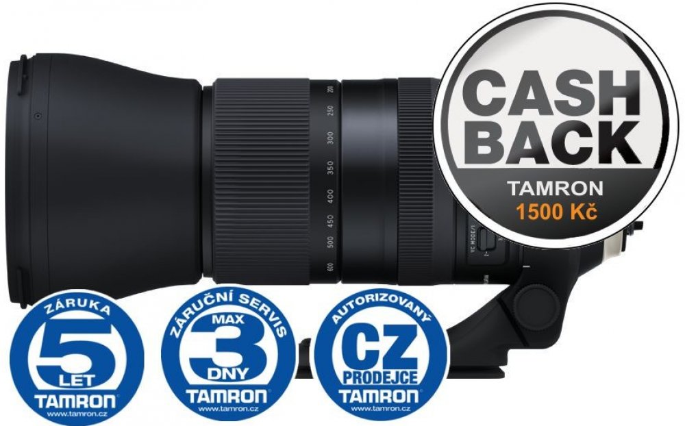 s proměnlivým ohniskem (ZOOM) Tamron Canon teleobjektivy 600 mm 150 mm 220 cm 32 1 : 3.9 95 mm 2010 g 6.3 5 Full Frame f/5