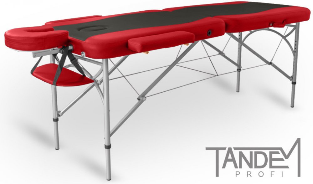 Objevte perfektní masážní stůl pro své terapie – Skládací masážní stůl TANDEM Profi A2D Duo v elegantní černo-červené barvě! Tento dvoudílný, skládací stůl je navržen pro maximální bezpečnost a pohodlí. Jeho zaoblená konstrukce a osmi bodová svařovaná konstrukce zajišťují, že unese až 300 kg! Ideální pro profesionální maséry i příležitostné užití. Ať už máte klienty jakékoli váhy, tento stůl se vám nikdy nezklame.Proč si vybrat právě tento model? Díky hustému molitanu, který je trvanlivější než u běžných stolů, si vaši klienti užijí skvělý komfort po celou dobu terapie. Extra zpevněný rám a hliníkový držák opěrky hlavy zaručují vysokou stabilitu a dlouhou životnost. Na rozdíl od plastových alternativ, tento stůl se pyšní odolnějšími komponenty, které dlouho vydrží i při častém používání.Pořiďte si masážní stůl, který kombinuje praktičnost a krásu. Tandem Profi A2D Duo se dodává s bohatým příslušenstvím a je zabalen v speciálně zesílené tašce, která se snadno přenáší. Mezi hlavní výhody patří:Nastavitelná výška (65-91 cm)Šířka stolu 70 cm a délka 195 cmHmotnost pouze 14,8 kg bez příslušenstvíVysoce kvalitní hliníková konstrukcevelká nosnost a stabilitaInvestice do masážního stolu není pouze nákupem, je to krok směrem k vyšší kvalitě poskytovaných služeb. S Tandem Profi A2D Duo budete mít jistotu, že vaše terapie budou nejen efektivní, ale i příjemné pro všechny vaše klienty!