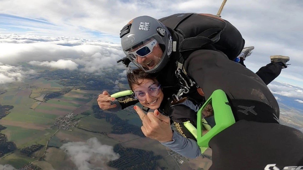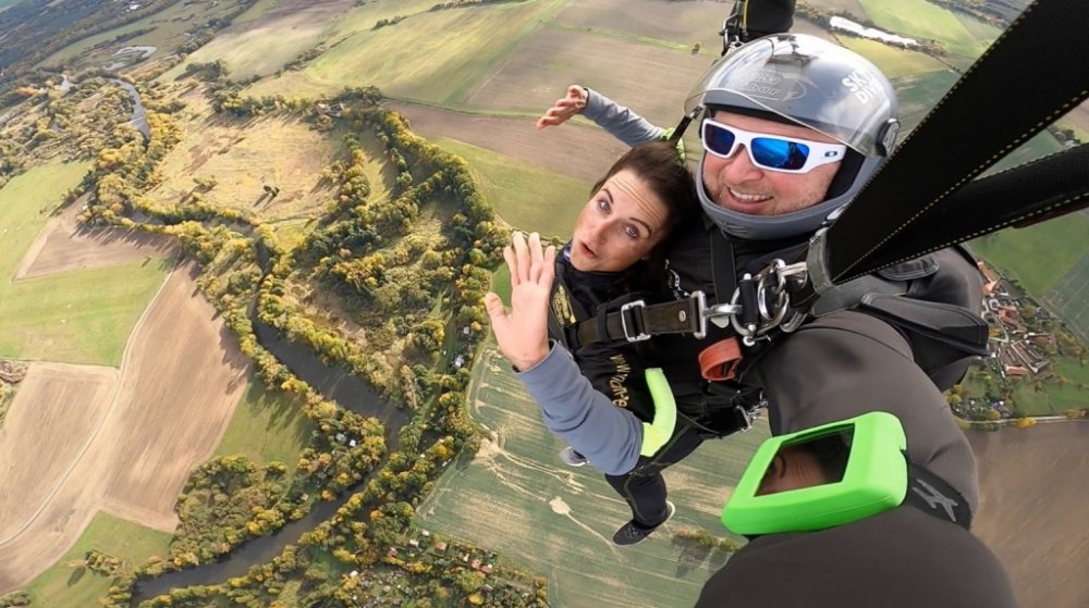 Tandemový seskok je jedinečná příležitost vyskočit si z letadla a zažít paráááádní euforii z volného pádu. Nejdříve proběhne krátká instruktáž, co při skoku dělat a co raději nedělat. Třeba se nedržet zuby nehty letadla. Pak přijde na řadu oblíkačka do výstroje a nástup do letadla. Veškeré obavy zmizí hned, když se dozvíte, že jeden instruktor zvládne klidně 387 seskoků za měsíc. A všechny bezpečn...