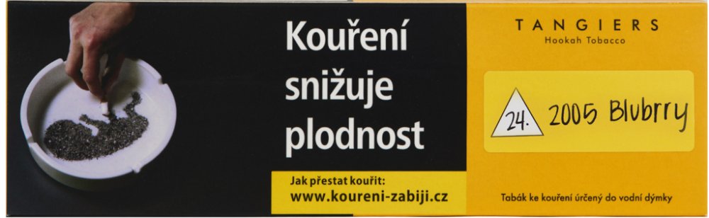Téměř každý, kdo se pohybuje v dýmkařském světě, už někdy slyšel o kalifornském zlatě s názvem Cane Mint. Pro americké dýmkaře běžný tabák, ale pro české dýmkaře legenda o dokonale vyladěných chutích a nezanedbatelné síle. Poptávka po americkém tabáku Tangiers dlouho vysoce převyšovala nabídku, a není se čemu divit. Jemný cut, tmavé listy bez dobarvování, unikátní příchutě vyladěné k dokonalosti, lehce patrná příchuť tabáku a pořádný buzz. Přesně to nabízí Tangiers Noir dýmkařským gurmánům. Příchuť 2005 Blubbry: Chuť inspirovaná klasickou borůvkou od Tangiers. Blubrry 2005 je obohacena o krémové tóny, velice jemná až téměř smetanová a sladká borůvka.