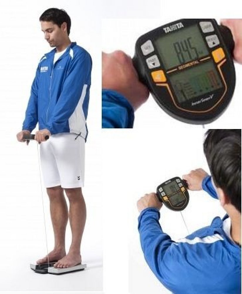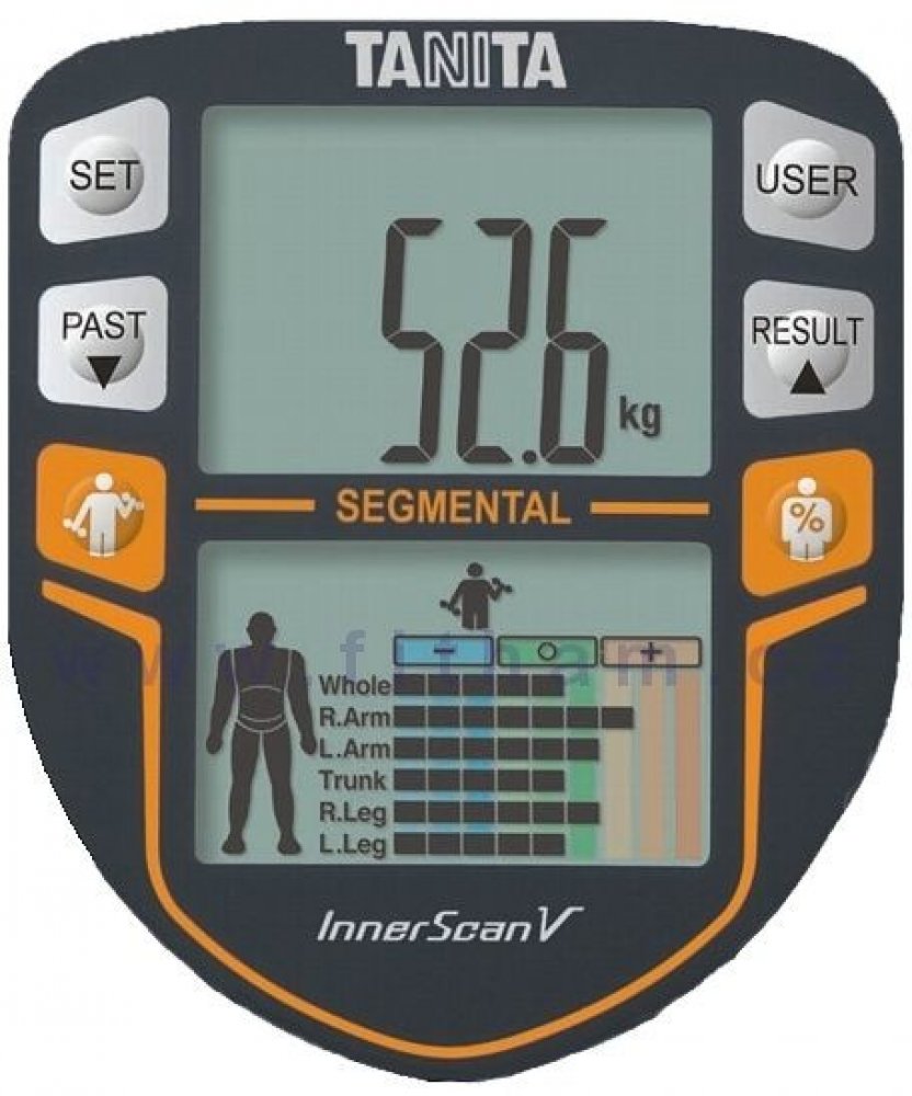 Procento tělesného tuku = měřeno nejpřesnější dostupnou metodou BIA (bioimpedanční analýza): elektrody v dotykových bodech vyšlou slabý, naprosto neškodný proud tělem – tento signál prochází svalstvem rychleji než tukem.