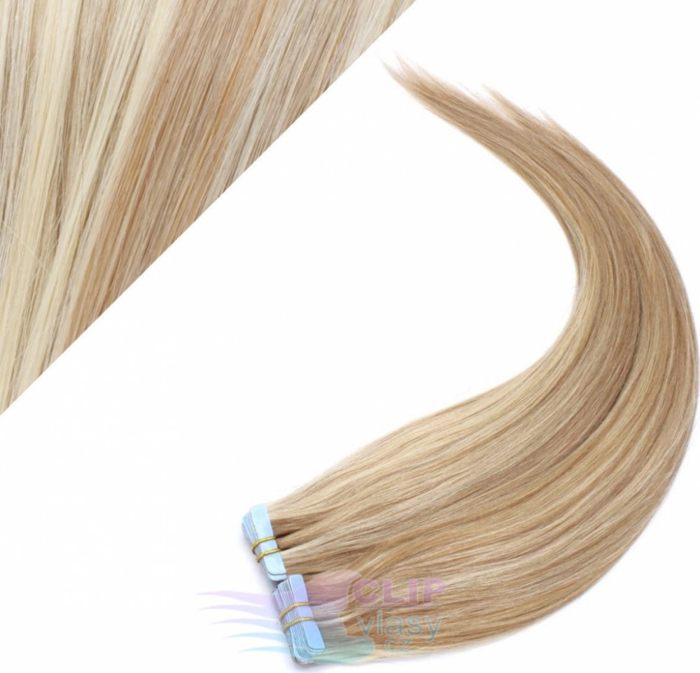 Tape in 50cm vlasy REMY světlý melír #12/613