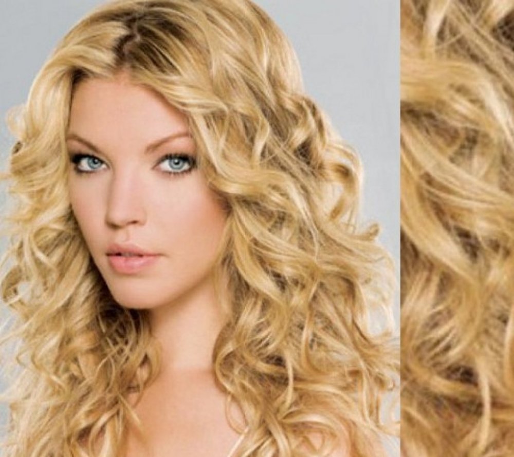 Tape in vlasy 53cm lidské kudrnaté PŘÍRODNÍ/SVĚTLEJŠÍ BLOND