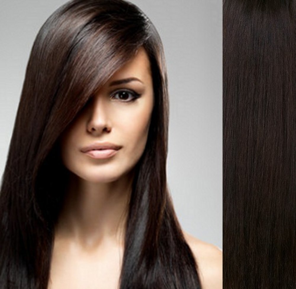 Tape in vlasy 53cm lidské TMAVĚ HNĚDÉ