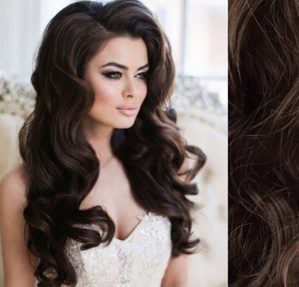 Tape in vlasy 63cm lidské vlnité STŘEDNĚ HNĚDÉ