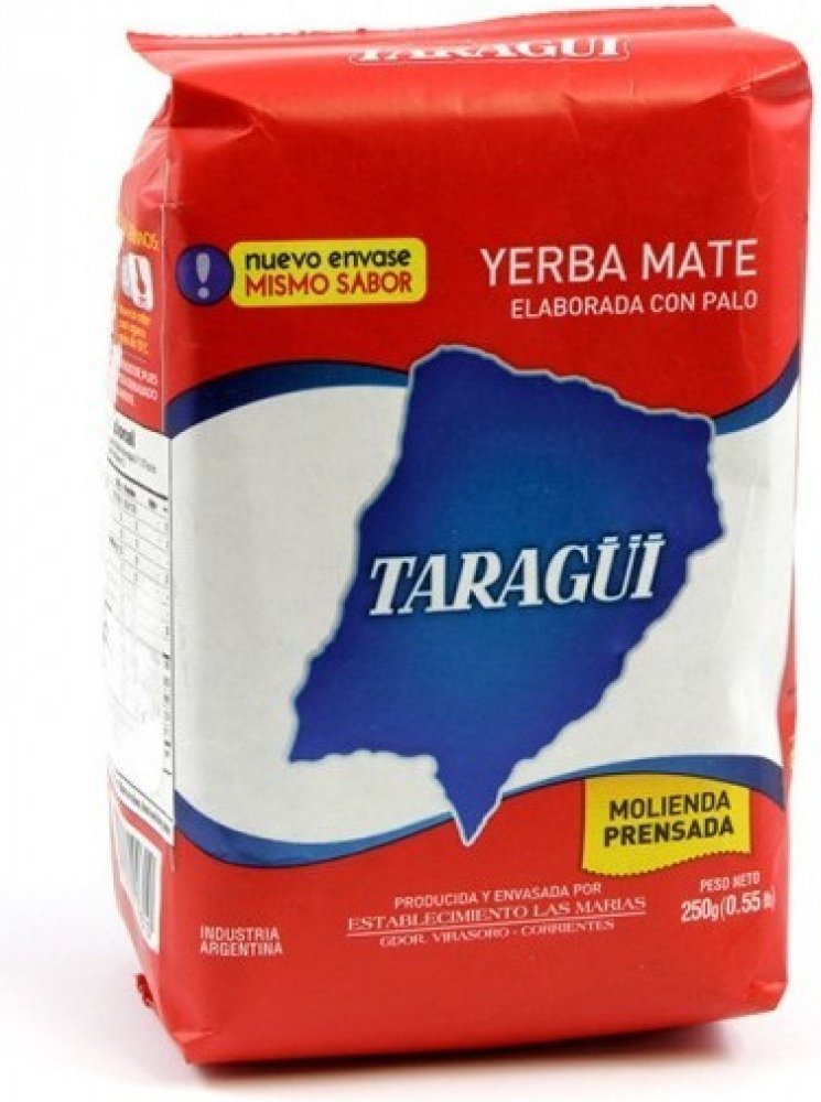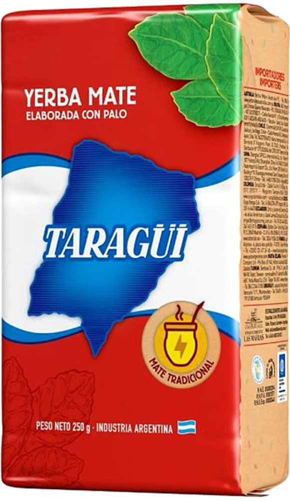Taragüi Elaborada Con Palo Tradicional – argentínská jistota. Vážené a ceněné yerba mate. Sbírané a selktované na certifikované plantáži Las Marias odkud pochází i jiné známé značky (jako La Merced nebo Union). Zosobnění všech pozitivních stran yerba mate. Jeho vyjímečná chuť se udržuje i po několika zalití. Ceněný mateisty gustujícími v klasice. Také začínající mateisté si zamilují jeho jemné povzbudivé účinky. Delikátní chuť klasického yerba mate. Máme zatím dočinění s výrazným hořcem a kouřovým aroma. Chuť vydrží i po dobu několika zalití (což charakterizuje vlastnosti najlepších značek) při mírném povzbuzení.