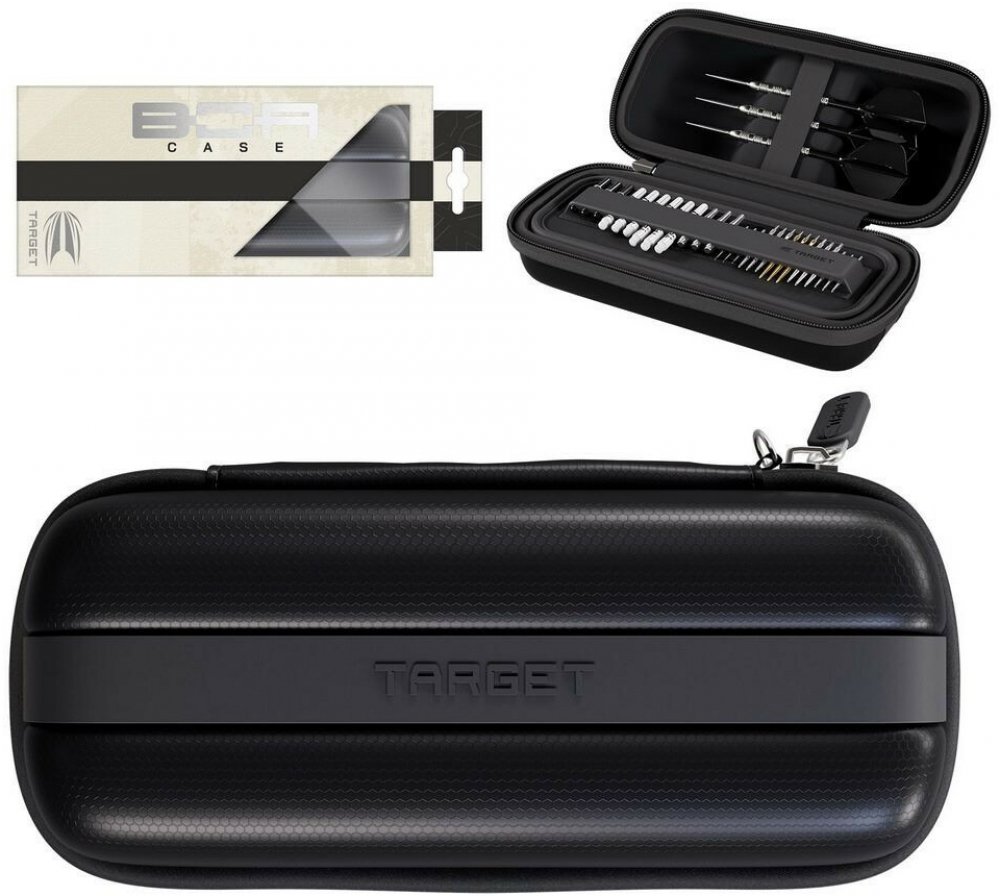 Pouzdro Target BOA černé – na 6 šipekTarget BOA je prémiové pouzdro vytvořené pro hráče, kteří chtějí mít svou výbavu vždy perfektně chráněnou a uspořádanou. Elegantní černý design spojuje praktičnost s moderním vzhledem a díky kompaktním rozměrům je ideální na tréninky i turnaje.Hlavní výhody:Kapacita: uloží až 6 plně sestavených šipek (2 kompletní sety),Praktické vnitřní uspořádání: prostor na 12 násadek, 15 Swiss Point hrotů a další příslušenství (letky, K-Flex, nástroje),Spandexová podšívka odolná proti poškrábání: chrání šipky a hroty před poškozením,Pevná EVA konstrukce: tvrdý obal poskytuje maximální ochranu při přenášení,Zipové zapínání: jednoduché a bezpečné uzavírání.Technické údaje:Materiál: EVARozměry: 20 × 7 × 8 cmBarva: černáKapacita: 2 kompletní sety šipek + příslušenstvíBalení obsahuje: pouze pouzdro (šipky a doplňky nejsou součástí)Výrobce: Target Sports Ltd.Target BOA je dokonalým řešením pro hráče, kteří chtějí svou výbavu nosit bezpečně a stylově – bez nutnosti šipky mezi hrami rozebírat.