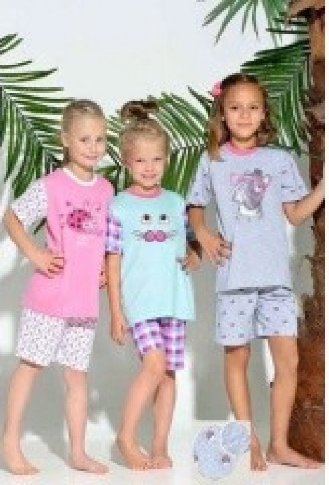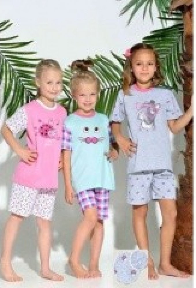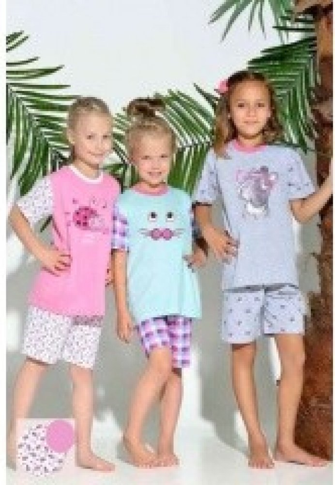 Beruška pro malé holčičky! Pastelově růžové letní dívčí pyžamo se skládá z růžového trička s krátkým rukávem a fantastickým potiskem, dále pak z bílých šortek, které jsou společně s rukávy trička ozdobeny beruščím motivem. Báječně pohodlné, ideální na léto.
