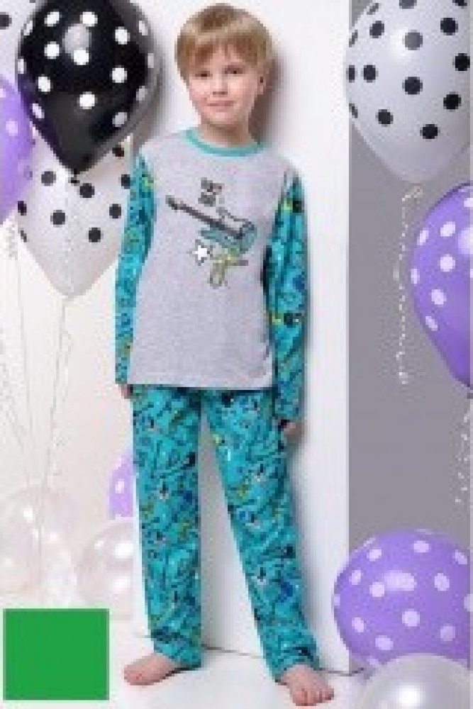 Rock Star! Komfortní chlapecké pyžamo je vyrobeno z kvalitní bavlny. Horní díl tvoří šedé triko s dlouhým rukávem a potiskem elektrické kytary. Dolní část tvoří dlouhé zelené kalhoty rovněž s kytarovým motivem. Potěší zejména malé milovníky rocku! Složení: 100% bavlna