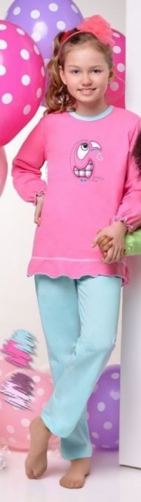 Papouščí objetí! Kvalitní dívčí pyžámko značky Taro je vyrobeno z jakostní bavlny, která dopřeje Vašim nejmenším tolik potřebné pohodlí. Horní díl s dlouhým rukávem je sladce růžový s princeznovskými volánky kolem pasu a rukávů. Na hrudi se pyšní výšivkou roztomilého papouška. Kalhoty jsou dlouhé, tyrkysově modré barvy. Ideální do chladnějších, podzimních nocí.