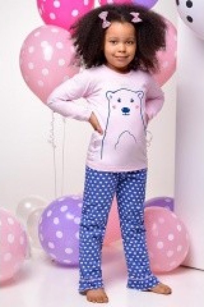Medvědí spánek! Jakostní bavlna, vysoké pohodlí, krásný potisk - to vše Vám přináší kvalitní dívčí pyžámko značky Taro. Horní díl s dlouhým rukávem se pyšní rozkošným potiskem ledního medvíděte, který má na hlavě drobnou korunku z lesklých kamínků. Kalhoty jsou dlouhé, posety srdíčky, dole s volánky. Ideální do chladnějších, podzimních nocí. K dostání ve dvou verzích - růžové tričkoa tmavě modré...