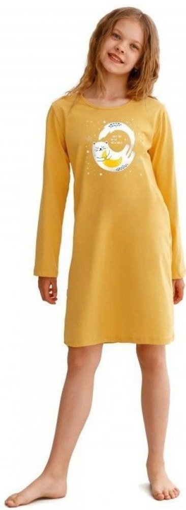 Dlouhé dívčí pyžamo je vyrobené z kvalitní 100% bavlny, která zajistí maximální pohodlí po celou noc. Pyžámko má dlouhé rukávy i nohavice. Je ušité ze 100% kvalitní bavlny, která zajistí dokonalou prodyšnost a maximální pohodlí. Hodí se také pro citlivější pokožku. Vršek dívčího pyžama má kulatý výstřih a žlutou barvu s motivem kočky. Zezadu je tričko lehce prodloužené a šité do oválného tvaru. Sp...