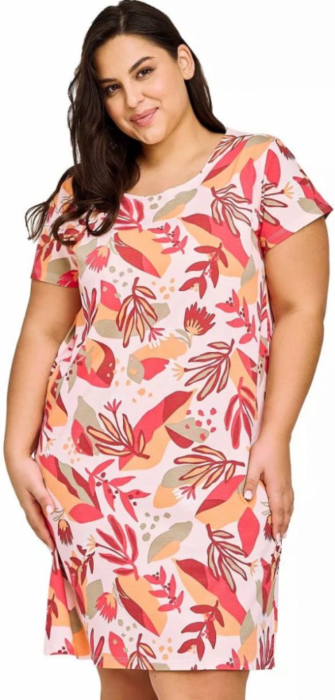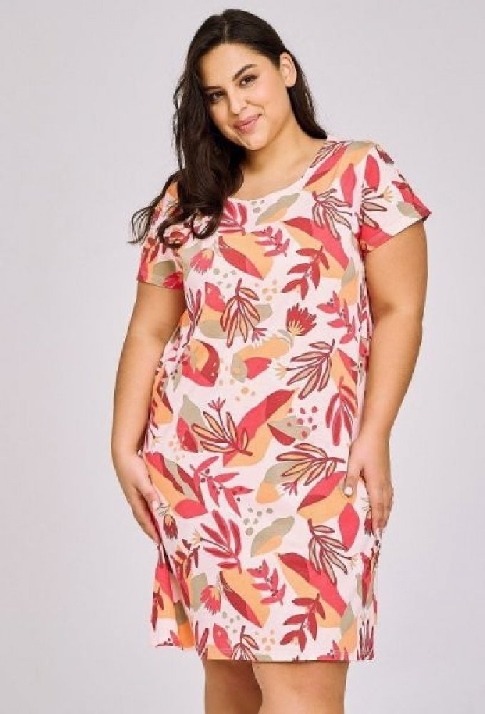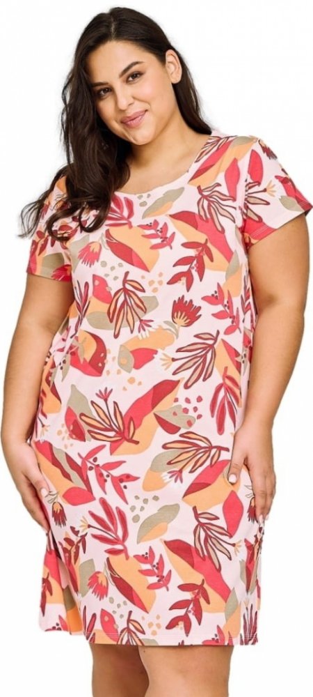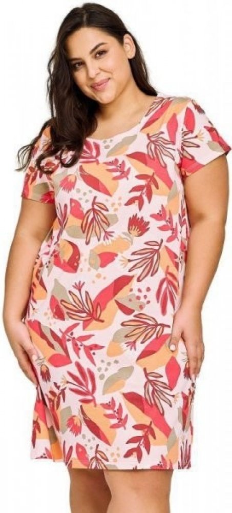 Nadměrná dámská noční košile Tessa s barevnými květy 4XL Noční košile Tessa má krásný pestrobarevný vzor a velice pohodlný střih. Košilka je vyrobená ze 100% bavlny, a proto je velice příjemná na spaní. Je prodyšná a má kvalitní zpracování. Je s krátkými rukávy a má kulatý výstřih. Má oranžovo-červený vzor s květinovým motivem. Je dlouhá cca 95 cm (měřena velikost XXL).