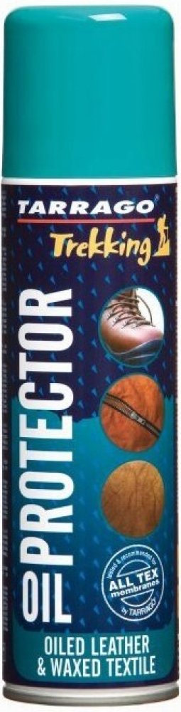 Tarrago Trekking Oil Protector spray 250 ml je impregnace vyvinutá pro extrémně namáhanou trekkingovou výbavu z mastné kůže, nubuku a voskovaného plátna. Doporučeno pro GoreTex a ostatní High-Tech membrány. Účinně chrání veškerou trekkingovou výbavu před deštěm, sněhem, mastnotami, olejovými skvrnami a hlubokým znečištěním.