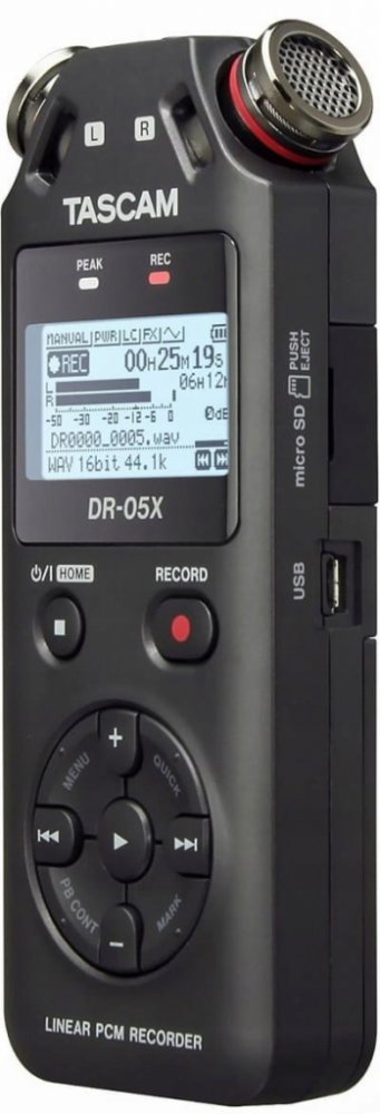 DR-05X nabízí přenosné řešení pro záznam vysoce kvalitního stereo zvuku v MP3 nebo WAV formátech - včetně 96-kHz/24-bit - vše ukládá na microSD kartu s maximální kapacitou 128 GB. Dvojice všesměrových mikrofonů si poradí s hlasitostí 125 dB SPL a současně jsou dost citlivé pro zachycení nejjemnějších detailů. Uživatelé mohou připojit svůj mikrofon nebo linkový výstup z jiného media pomocí 3,5mm jack konektoru, který podporuje fantomové napájení pro malé kondenzátorové mikrofony.