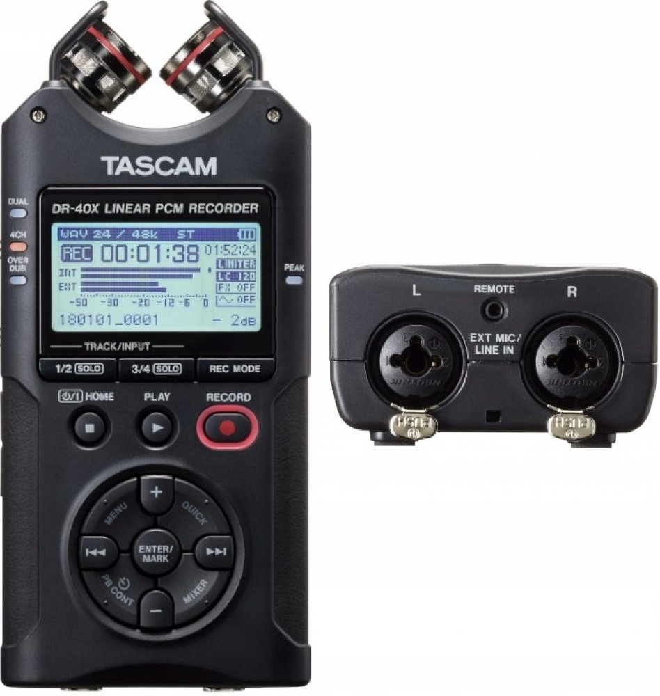 TASCAM DR-40X je čtyřkanálový přenosný rekordér určený pro záznam zvuku ve formátu MP3, WAV a BWF s rozlišením až 24 bit / 96 kHz. Je vybavený stereo párem kondenzátorových mikrofonů (s nastavitelnou konfigurací AB nebo XY) s vysokou citlivostí a kardioidní směrovou charakteristikou. K dispozici jsou navíc dva XLR/TRS vstupy s phantomovým napájením pro externí mikrofony. Kromě mobilního nahrávání...