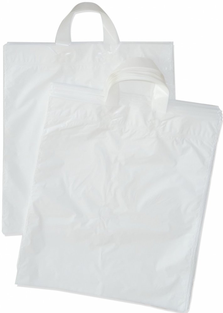 Taška igelitová LDPE s uchem bílá . Rozměr 38 x 46 cm . Nosnost 10 kg