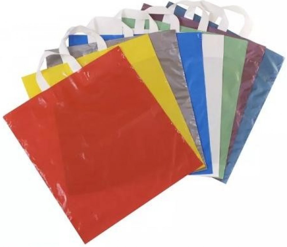 Taška igelitová s uchem LDPE ŽLUTÁ. Igelitová taška s páskovým uchem žluté barvy, síla fólie je 40 mikronů, materiál LDPE, cena za kus.