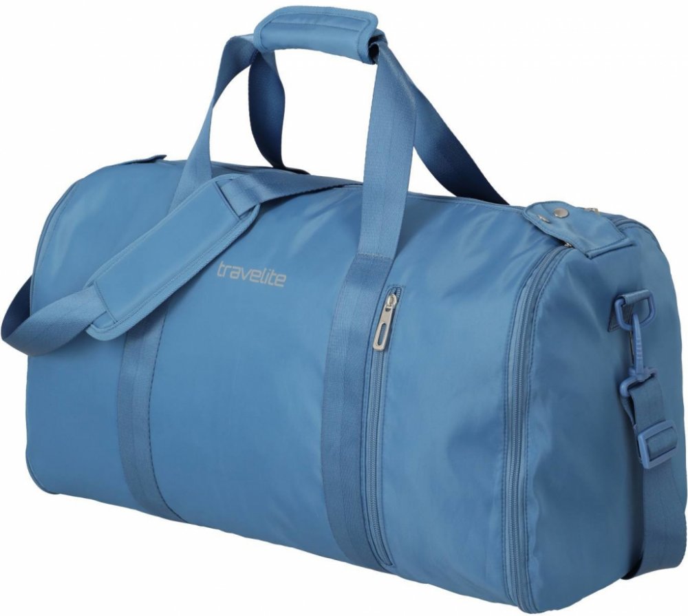 Stylová skládací taška na oděv značky Travelite série Basics v modré denim barvě. Skvělá, skladná a kvalitní taška se Vám stane ideálním společníkem ať už na cestách, za sportem, či na volný čas.