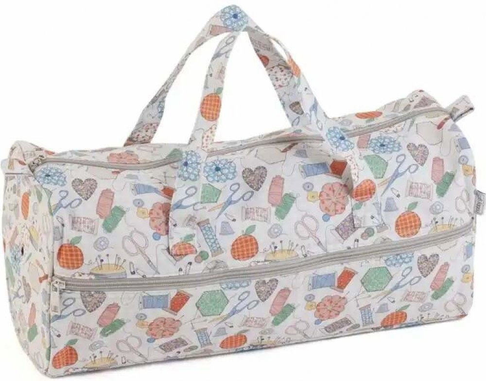 Praktická látková taška s potiskem soviček, kam si poskládáte vše potřebné k pletení či háčkování.
