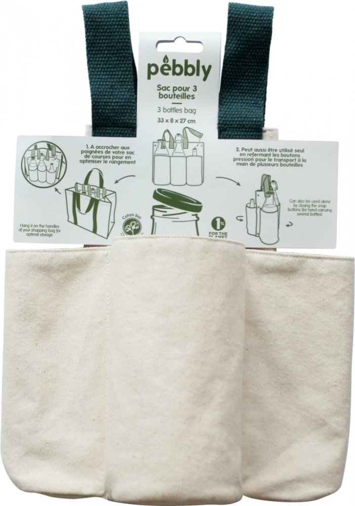 Na 3 skleněné lahve pro nošení v ruce nebo můžete zavěsit do jiné nákupní tašky- ideální na skleněné zálohované lahve. Vyztužené bavlněné rukojeti zajišťují pevné uchopení, taška se hodí i do XL Pebbly tašky NBA210. Francouzská značka Pebbly nabízí estetické, funkční a udržitelné produkty pro Vaši kuchyni a vaření ve francouzském stylu. Společnost Pebbly se zaměřuje na přírodní a udržitelné materi...