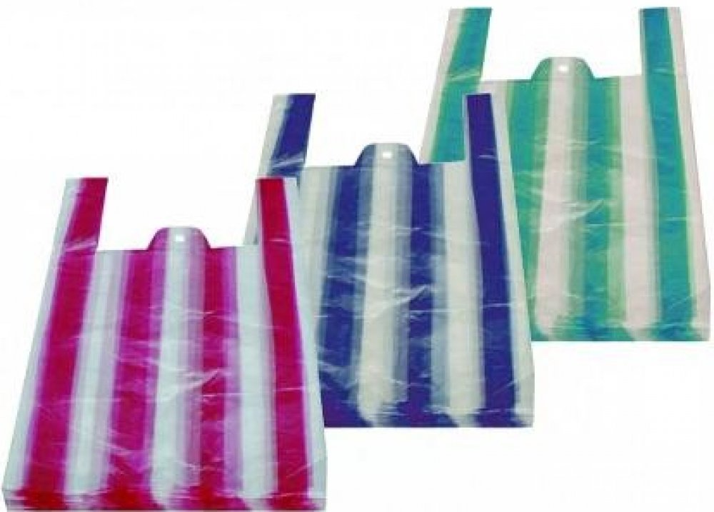 Tašky mikrotenové 4 kg, pruhy-mix barev HDPE, 100ks. Síla fólie je 7 mikronů, balení obsahuje 100 kusů, materiál HDPE.