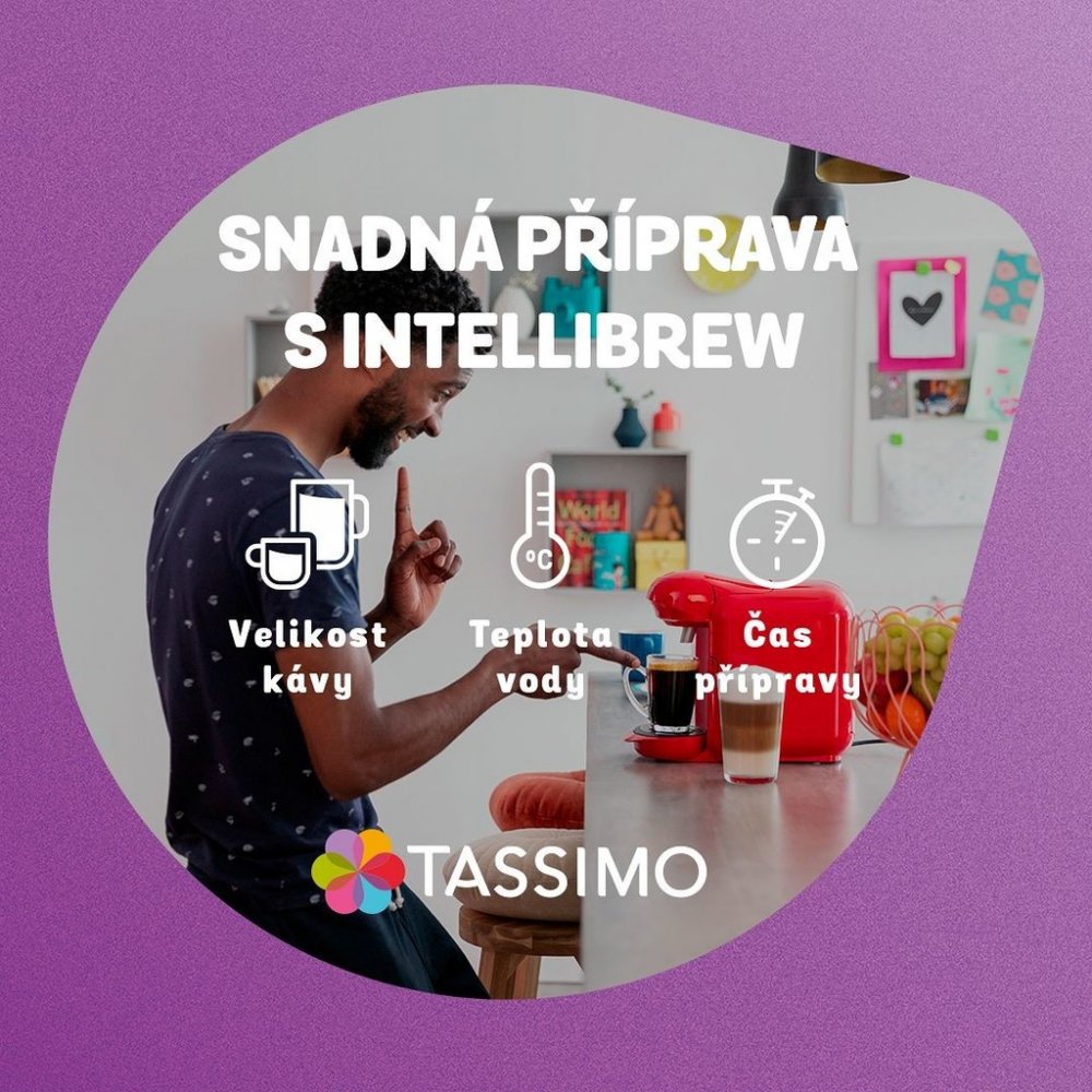 TASSIMO Jacobs Café Au Lait je kávový nápoj kombinující rozpustnou kávu Jacobs a sušené mléko v jedné kapsli. Výsledkem je jemná a lehce nasládlá chuť s výraznou mléčnou složkou a krémovou pěnou. Nápoj je určen pro přípravu většího šálku o objemu 180 ml.