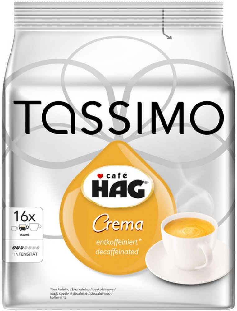 Jedná se o skutečnou klasiku, která je perfektní jako odpolední nebo večerní šálek, pokud si ještě chcete vychutnat dobrou kávu, aniž byste se obávali narušení nočního spánku. Tassimo Café Hag je vytvořena z dobře vyvážené směsi skládající se ze 100% zrnkové kávy Arabica a dodává se v klasické kávové chuti s kouřovými podtóny. Je doplněna bohatou a nadýchanou pěnou, díky níž je chuťový zážitek mimořádně vzrušující. I když neobsahuje kofein, chutná tak, jak má káva chutnat, a je tak plná a aromatická, že ji lze smíchat s mlékem. S Tassimo Café Hag si můžete vychutnat dobrý šálek kávy po celý den a večer. Navzdory běžné skepsi vůči kávě bez kofeinu vám kávu Café Hag vřele doporučujeme, protože vyvrací mýtus, že káva bez kofeinu nemůže chutnat jako ta „pravá“.
